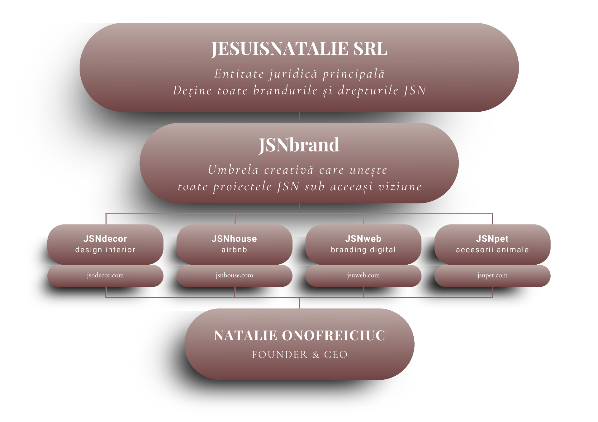 JSNbrand este un ecosistem în continuă creștere, care cuprinde inițiative în diverse domenii: dezvoltare imobiliară, design interior, web design, e-commerce, creare de conținut și scriere autobiografică. Nu construiesc doar afaceri, ci creez sens, aducând echilibru între creativitate și strategie.
